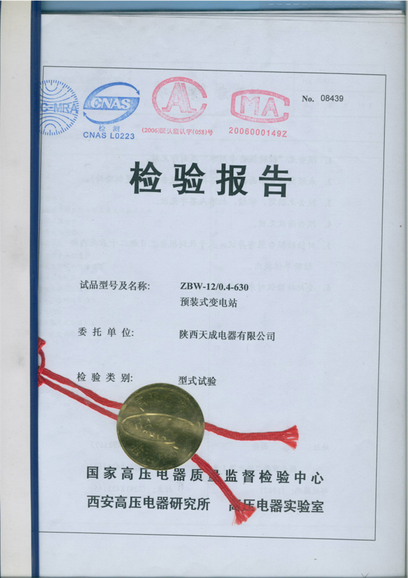 • 检验报告-ZBW-12-0.4-630